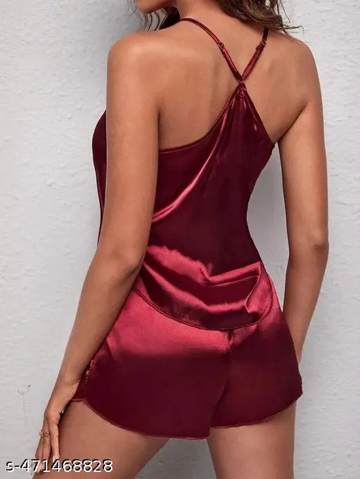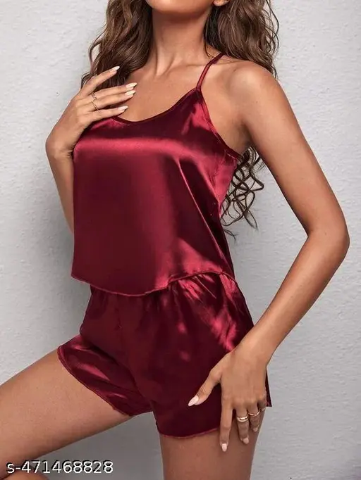 Enjoy luxury with our Satin Sleepwear Set, which is created for maximum comfort and style. This Sexy Lingerie Set India is ideal for a Honeymoon Night Dress for Women. It includes a silky satin cami top and elastic shorts for a flattering fit. It is ideal for ladies' summer sleepwear and makes a lovely Valentine's Day lingerie gift or luxury sleepwear for women who respect elegance and comfort.