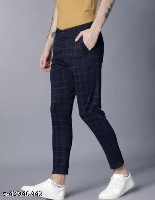Men's Checked Chinos Blue Trousers