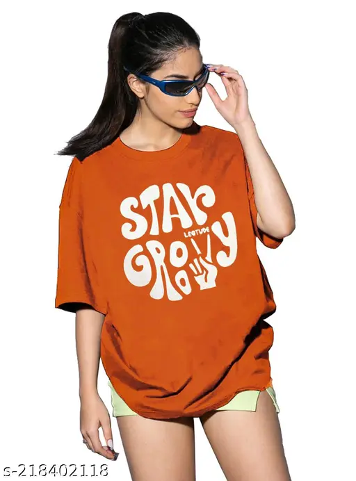 Name : LEOTUDE's Trendy Feminine Oversized Half Sleeve Cotton Blend Women's T-Shirt | Plus Size Also Available
