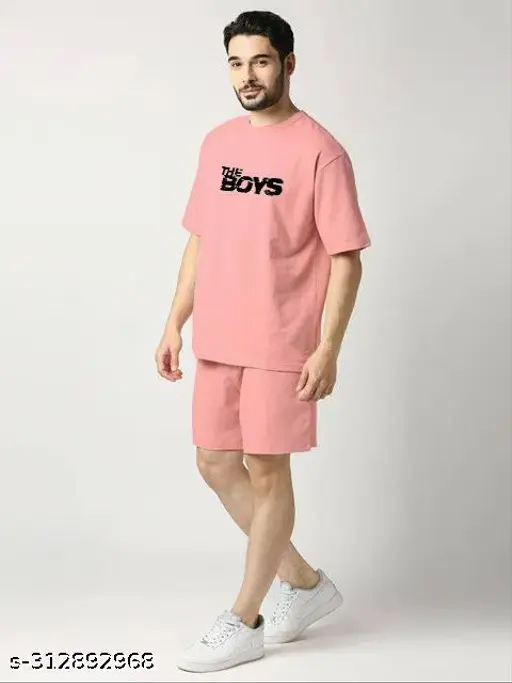 Name : Trendy Cotton Half Sleeve Night Suit/Night Wear Classy Beach Wear Night Suit , CO-RDS Sets For Men - PEACH